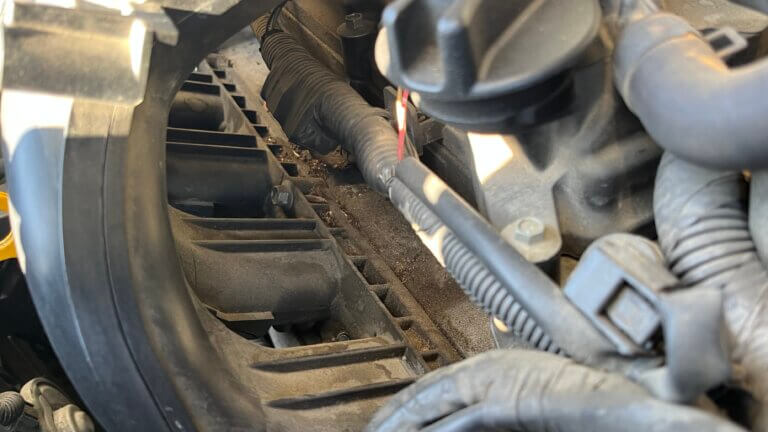 私自身、エンジンルームはそれなりに綺麗にしていたつもりだったけど、死角であったインマニ接続部は実際こんな感じだった。