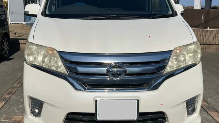 施工する車はC26セレナ。大きめのヘッドライトなので黄ばみも目立つ!