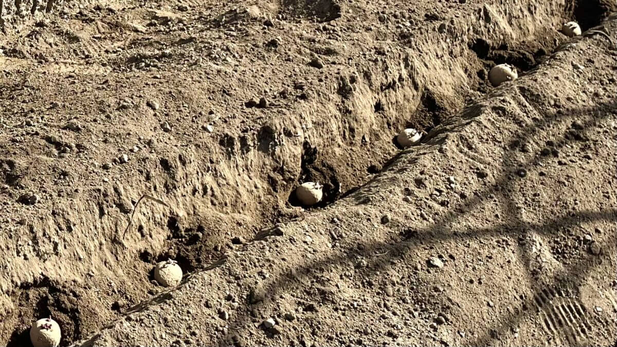 試し掘りをおこない、収穫タイミングを見極める。