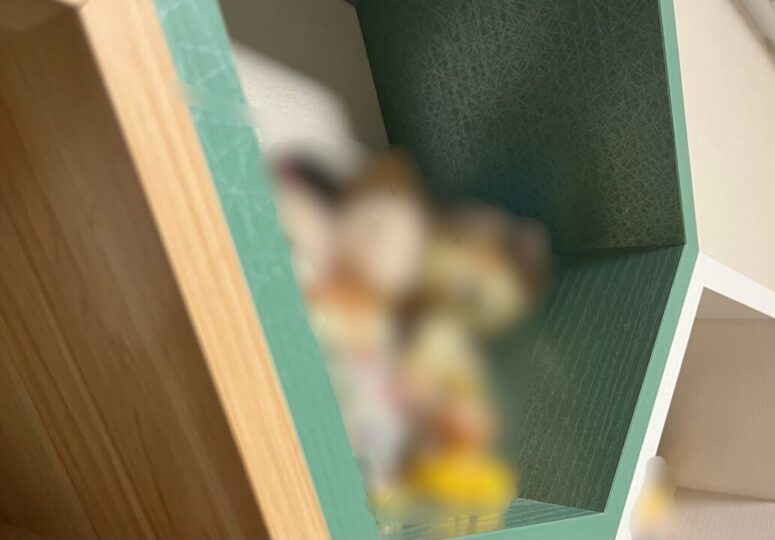 今までテレビボードに飾ってあったぬいぐるみを飾る場所がなくなったので棚を用意する必要がある。ちょうどテレビの上のスペースが空いたので、そこに棚を設置することにした。一枚板のウォールシェルフでもよかったが、我が家の一等地にある一番目を惹く場所!