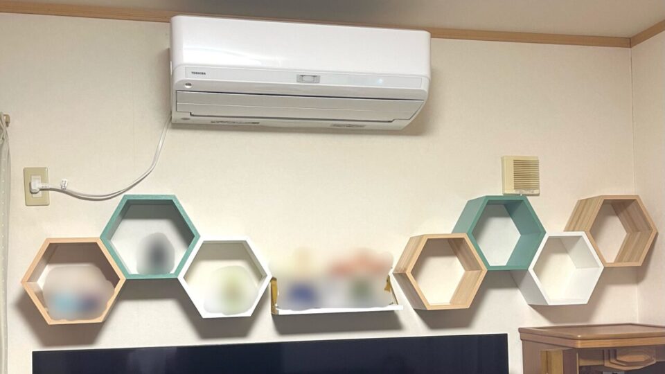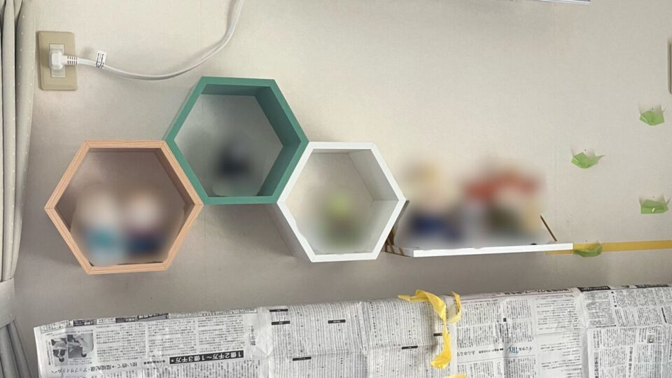 DIYでの製作も考えたが、結果的にネット検索で個性的でおしゃれな六角形の壁掛け棚(ウォールシェルフ)が見つかったので取り付けのみDIYで行うことにした。