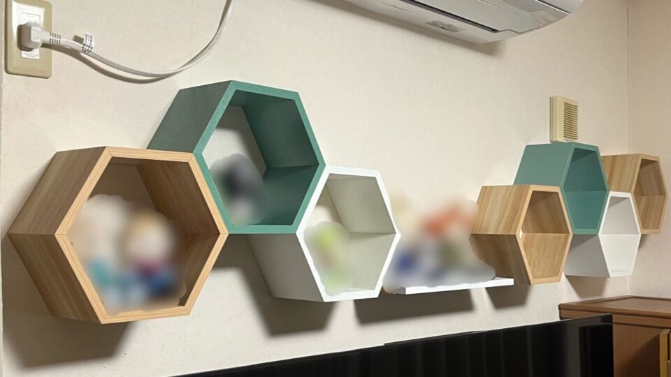 個性的でおしゃれな六角形の棚に、お気に入りのコレクションを飾って癒されてみてはいかがですか。