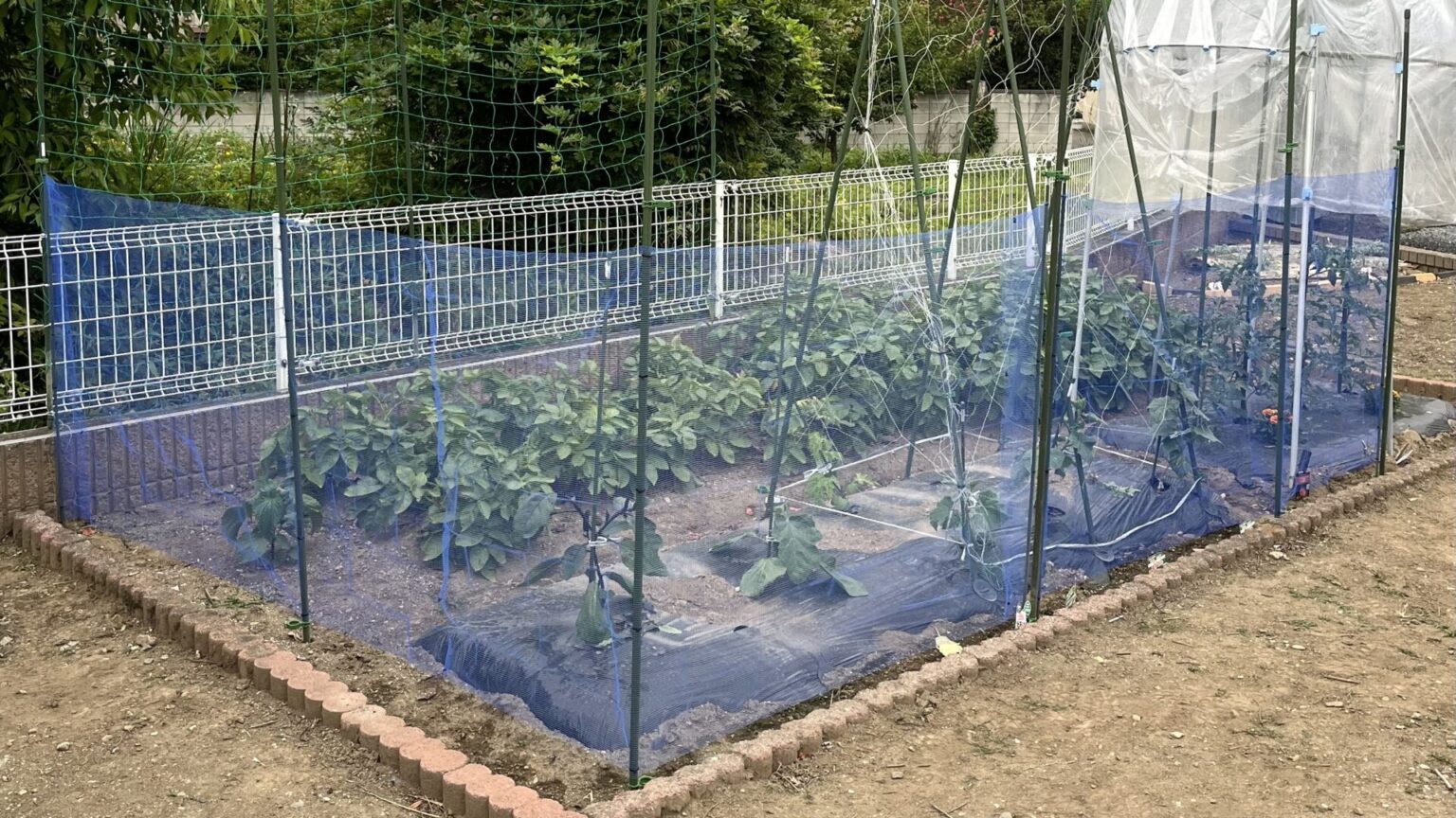 そこで、強風対策として菜園の周りに風よけネットを取り付けました。
