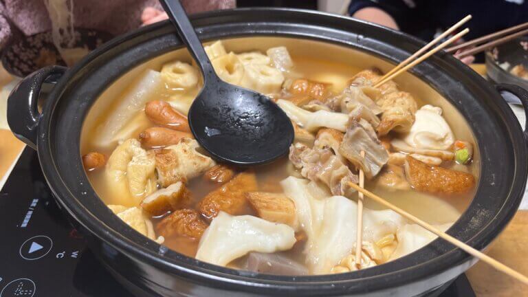 まず初めは、喉越しの良いしらたきやはんぺんから。画像にはかけらしか写ってないけど、味染み大根のかたまりもこのタイミングで(^∇^)